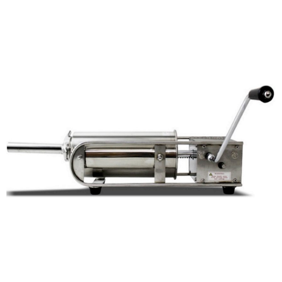 Горизонтальный колбасный шприц Hualian Machinery HV-5L со сменными цевками и объемом бункера 5 литров отлично подходит для небольших производств, предприятий общественного питания и пр. для изготовления различных полуфабрикатов, требующих набивки в колбасную оболочку.