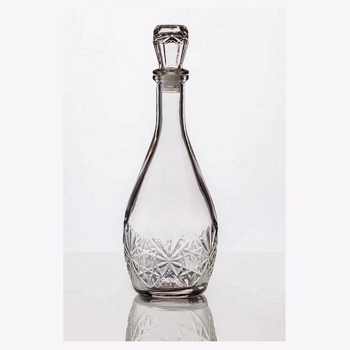 Плавная форма изделия, а также бесподобная огранка, нанесенная на основную часть, придают графину весьма презентабельный вид.