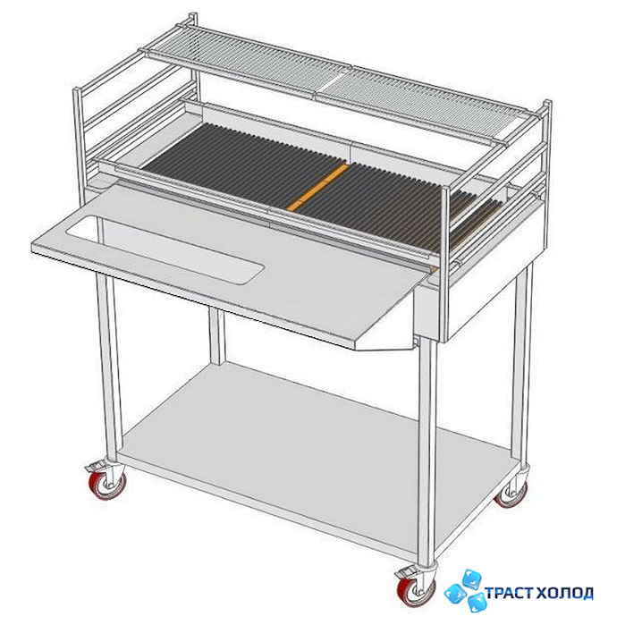 Гриль-барбекю на углях ТТМ ГБ-140К используется для приготовления стейков из рыбы, мяса или птицы, шашлыка, барбекю в ресторанах, кафе, барах и других заведениях общепита. Это оборудование имеет размер жарочной поверхности 1170х500 мм, сплошную усиленную полку с максимальной нагрузкой 60 кг, съёмную рабочую поверхность спереди с вырезом под 4 GN 1/6, регулируемый нагрев с помощью изменения уровня решётки, полки-решётки над жарочной поверхностью для поддержания температуры готового продукта, а также одну рабочую зону, разделённую на две части.
