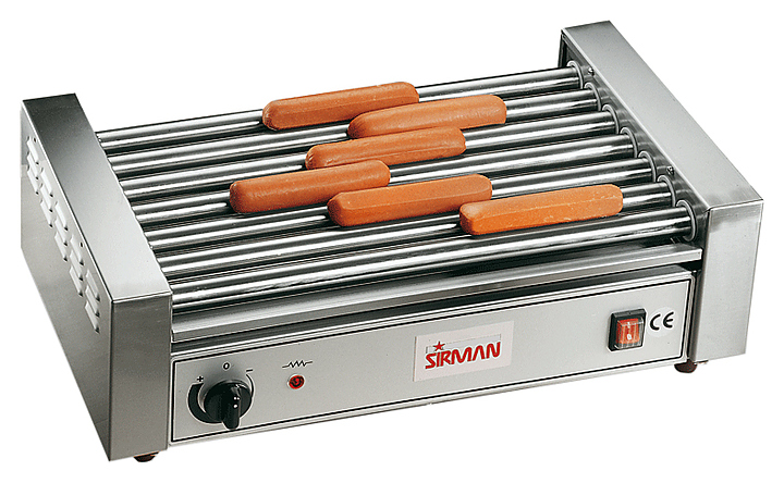 Гриль роликовый Sirman GW7 предназначен для обжаривания мясных и рыбных батончиков, сарделек и сосисок на предприятиях общественного питания и торговли. Модель оснащена асинхронным двигателем с редуктором скорости с зубчатой передачей и армированными нагревательными элементами. Постоянное вращение роликов способствует прожариванию продуктов со всех сторон.