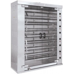 Гриль для кур шампурный электрический Сиком МК-10.81Э – это надежное и качественное оборудование для приготовления целых тушек птицы. Данное оборудование удобно в использовании, что объясняет его широкое применение в заведениях быстрого питания и уличной торговли. Благодаря использованию такого оборудования можно не только приготовить аппетитные куры-гриль с румяной корочкой, а также сохранять их в горячем состоянии на протяжение определенного времени. Продолжительный срок эксплуатации обеспечивает такой материал корпуса, как нержавеющая сталь. При этом тип дверей - распашной. Для удобства использования true и подсветка. Вместе с тем, электрический гриль для кур прост в обращении, система управления – электромеханическая.