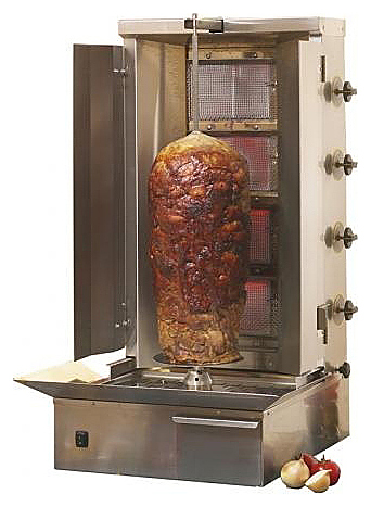 Гриль для шаурмы ROLLER GRILL GR 60 E предназначен специально для автоматического приготовления мяса за счет тепла, выделяемого нагревательными элементами. Данные аппараты весьма просты в обращении и широко применяются для приготовления аппетитной шаурмы. Технология обжаривания мяса при помощи данного аппарата подразумевает нанизывание мясной вырезки на нож, расположенный вертикально и вращающейся вокруг своей оси в непосредственной близости от нагревательных элементов, что позволяет добиться равномерного прожаривания и исключить пригорания. Устойчивость к воздействию внешних факторов обеспечивает такой материал корпуса, как нержавеющая сталь.