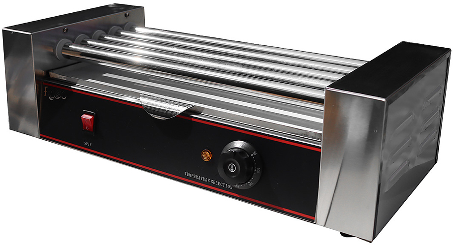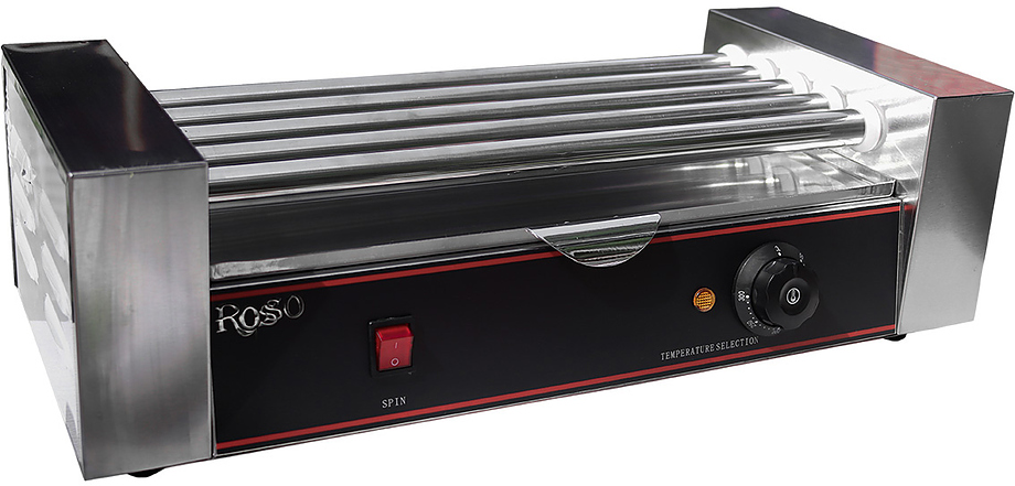 Гриль для хот-догов Rosso HHD-05 предназначен для обжаривания, подогрева и поддержания в горячем виде сосисок, сарделек, рыбных палочек, наггетсов и аналогичной продукции на предприятиях общественного питания и торговли. Модель оснащена рабочей поверхностью в виде вращающихся роликов и электромеханической панелью управления. Корпус и ролики выполнены из нержавеющей стали, ролики с антипригарным тефлоновым покрытием.