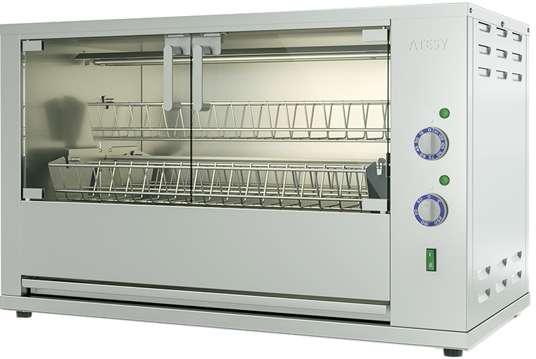 Гриль для кур Atesy Командор-5Э-Т (карусельный ) используется на предприятиях общественного питания и торговли для жарки тушек кур, цыплят, куриных окорочков, грудок и других продуктов питания.