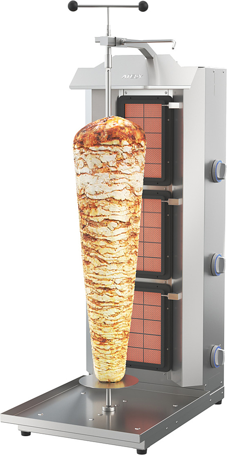 Гриль для шаурмы Atesy Шаурма-3-Газ-05-Н (с руч. приводом) используется на предприятиях общественного питания и торговли для приготовления мясной начинки популярного блюда шаурма (шаверма).