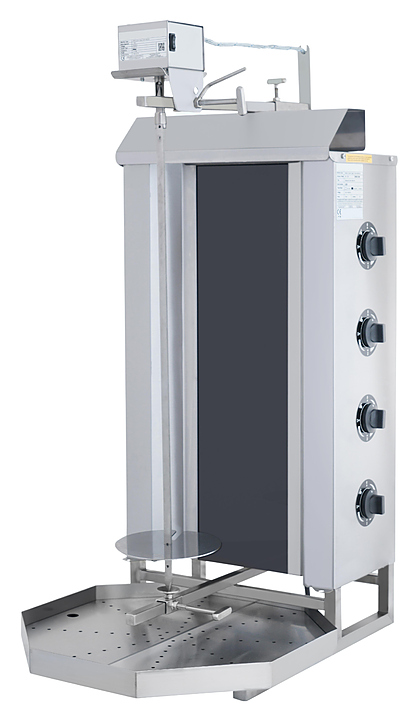Гриль для шаурмы T-Lux KGU 4 применяется для обжарки большого количества различных видов мяса и птицы для приготовления начинки из рубленного мяса для шаурмы и других блюд на предприятиях общественного питания и торговли. ТЭНы с керамическим термостойким защитным стеклом ROBAX, предотвращающим попадание масла на них. Корпус выполнен из пищевой нержавеющей стали.