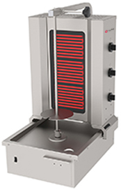 Гриль для шаурмы TATRA TDM E 3BW применяется для специально подготовленного свиного, говяжьего, бараньего или куриного мяса на вертеле на предприятиях общественного питания, в парках, кинотеатрах, магазинах и других общественных местах. Электромеханическая панель управления, нижний привод вращения вертела и емкость для сбора жира. Корпус выполнен из нержавеющей стали.
