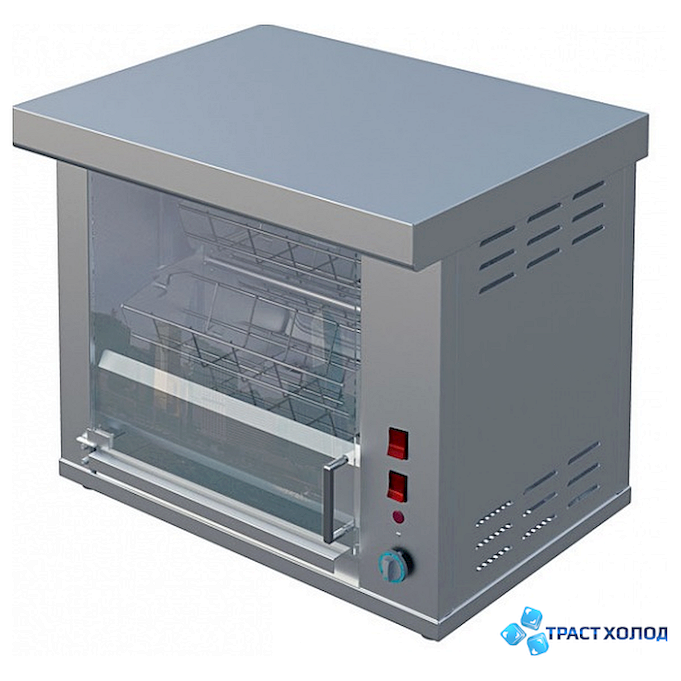 Гриль карусельный для  кур Атеси Командор 4М отличается удобством и простотой в использовании, что объясняет его широкое применение в заведениях быстрого питания и уличной торговли. Максимальная для предлагаемой модели вместимость кур составляет 8 шт. Благодаря использованию такого оборудования можно не только приготовить аппетитные куры-гриль с румяной корочкой, а также поддерживать их в горячем состоянии на протяжении некоторого времени. Необходимую для приготовления температуру обеспечивает такой тип нагревательного элемента, как тэн. Износоустойчивость аппарата обеспечивает такой материал корпуса, как нержавеющая сталь. При этом тип дверей - распашной. Для удобства использования true и подсветка.