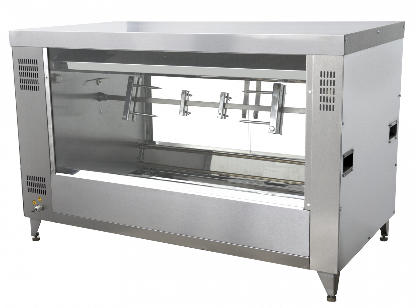Универсальный гриль на 40 тушек или 1 барашка в базовой комплектации арт. 21103б поставляется с барабаном и корзинами для жарки птицы, передние дверцы и задняя стенка из закаленного стекла, снабжен подсветкой, мощными ТЭНами, сверхнадёжной механикой, по желанию клиента может окрашиваться в золотой, белый, черный, серый, кремовый, красный цвета, в базовой комплектации производится без окраса, оснащен таймером на 120 минут, выполнен полностью из нержавеющей стали г. нетто 1320х685х760;118кг;10.5 кВт), г.брутто: 1420*785*1010;151кг