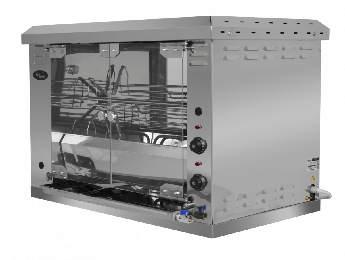 Гриль карусельный GRILL MASTER Ф3КУ1Э используется для приготовления целых тушек птицы в ресторанах, кафе и на других предприятиях общественного питания. За счет простоты в эксплуатации его можно встретить практически во всех местах общественного питания. Камера гриля оснащена подсветкой, что позволяет покупателям наблюдать за приготовлением блюд. За счет постоянного вращения корзин около горелок позволяет птице прогреваться равномерно. Корпус и внутренние элементы – нержавеющая сталь. Все стеклянные элементы данной модели выполнены из термостойкого стекла. Система газ-контроль обеспечивает данной модели высокую степень безопасности.