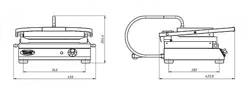 Гриль контактный Гриль Мастер Ф2ктЭ предназначен для быстрого и качественного приготовления продуктов на предприятиях сегмента «фаст-фуд», в закусочных, барах и любых других заведениях, где готовят горячие бутерброды, сэндвичи, шаурму (шавермы).