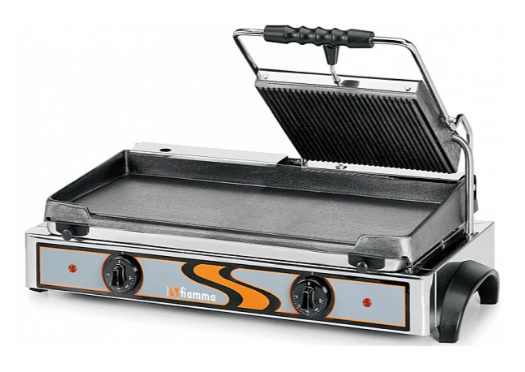 Гриль контактный FIAMMA GR 8.1 L используется в основном для жарки мяса, но в нём так же можно готовить различные бутерброды, сосиски, рыбу, блины или омлеты, в зависимости от типа рабочей поверхности гриля. Оснащен комбинированной жарочной поверхностью из чугуна. Регулировка температуры возможна до 250°С. Ручки выполнены из термостойкого материалаОсобенности: