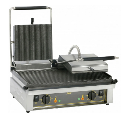 Гриль контактный Roller Grill MAJESTIC R с рифлеными чугунными поверхностями предназначен для использования предназначен для жарки мяса, птицы, рыбы, овощей, а также для приготовления стейков, гамбургеров и горячих сэндвичей на предприятиях общественного питания и торговли, специализирующихся на приготовлении фаст фуда.