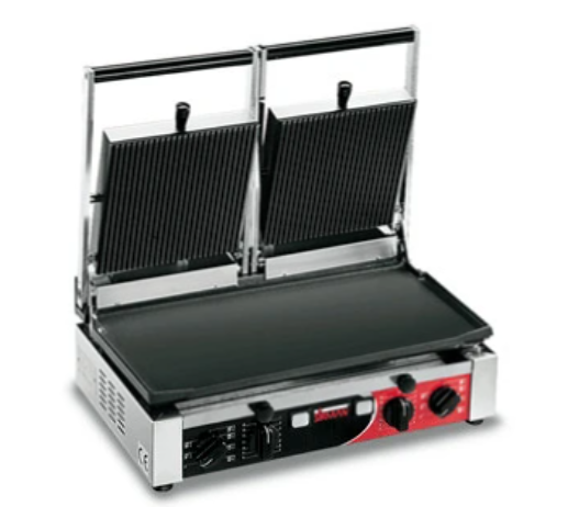 Контактный гриль SIRMAN PDL 3000 с двумя независимыми зонами нагрева предназначен для жарки различных продуктов, приготовления бутербродов и тостов.  Проста в эксплуатации и размещении, предлагая на маленьком пространстве большую рабочую поверхность. П