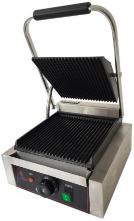 Гриль контактный Airhot CG предназначен для жарки мяса, птицы, рыбы, овощей, а также для приготовления стейков, гамбургеров и горячих сэндвичей на предприятиях общественного питания и торговли. Высокая скорость приготовления достигается благодаря встроенным в обе части аппарата тепловым элементам, которые плотно прилегают к продукту. Модель оснащена терморегулятором и съёмным поддоном для сбора жира и крошек. Корпус выполнен из нержавеющей стали, жарочная поверхность - из чугуна с антипригарным покрытием.