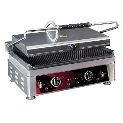 Гриль контактный TATRA TCG 6040 RR DT предназначен для использования на предприятиях общественного питания и торговли для разогрева блюд из мяса, птицы и овощей, а также приготовления горячих бутербродов и сэндвичей.