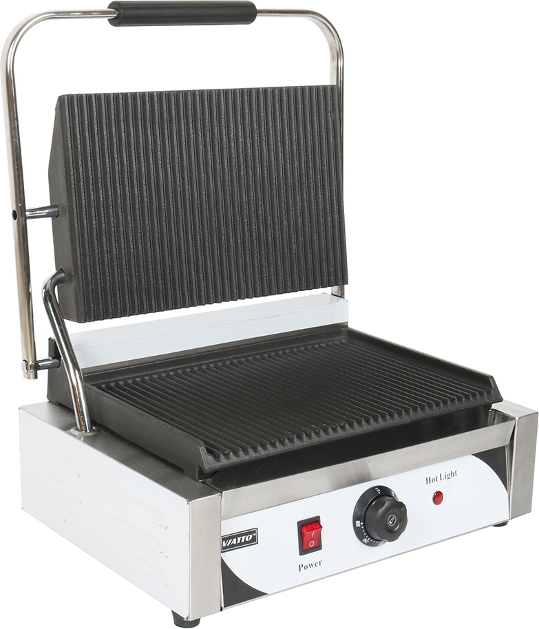 Гриль контактный VIATTO VA-CG811 применяется для жарки стейков, рыбы, овощей, сэндвичей на предприятиях общественного питания и торговли. Изделие настольное, односекционное оснащено двумя ребристыми пластинами и регулятором температуры.