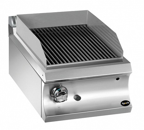 Гриль лавовый газовый Apach GLLGG48 используется на предприятиях общественного питания и торговли для приготовления на гриле овощей, мяса, рыбы, хлеба и других продуктов.