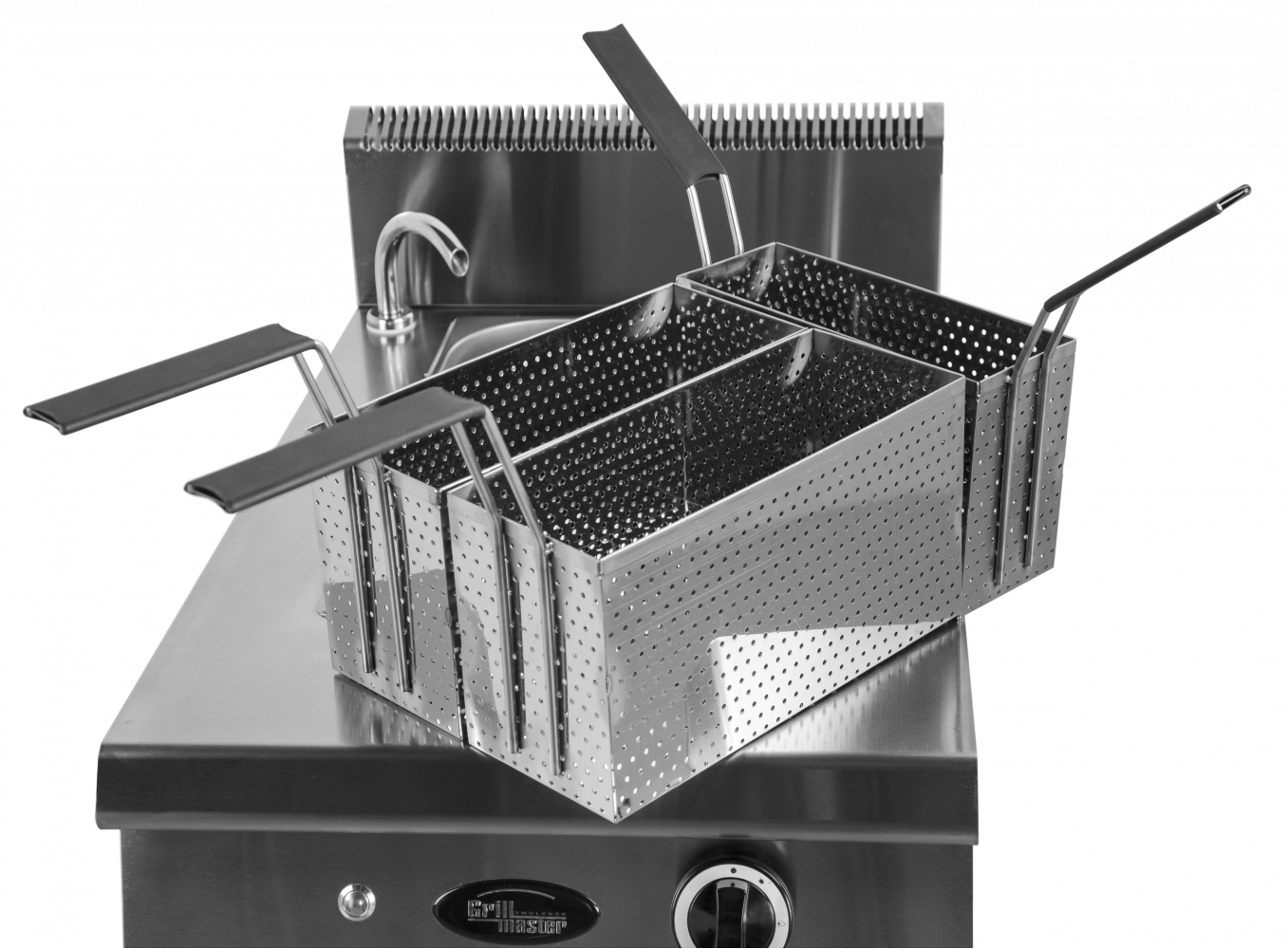 Газовая макароноварка Grill Master Ф1МВГ/800 (13066) предназначен для приготовления в корзинах риса, яиц, пасты, макарон, овощей, корнеплодов , вареников, пельменей или для кипячения воды. Макароноварка может работать как на природном, так и на баллонном газе, оснащена системой электророзжига и системой газ-контроля, поворотным заливным краном из полированной нержавеющей стали, а также краном для слива. Специальные корзины из нержавеющей стали снабжены крепежами с помощью которох их(корзины) легко закрепить над варочной емкостью. Корпус макароноварки выполнен полностью из нержавеющей стали.
