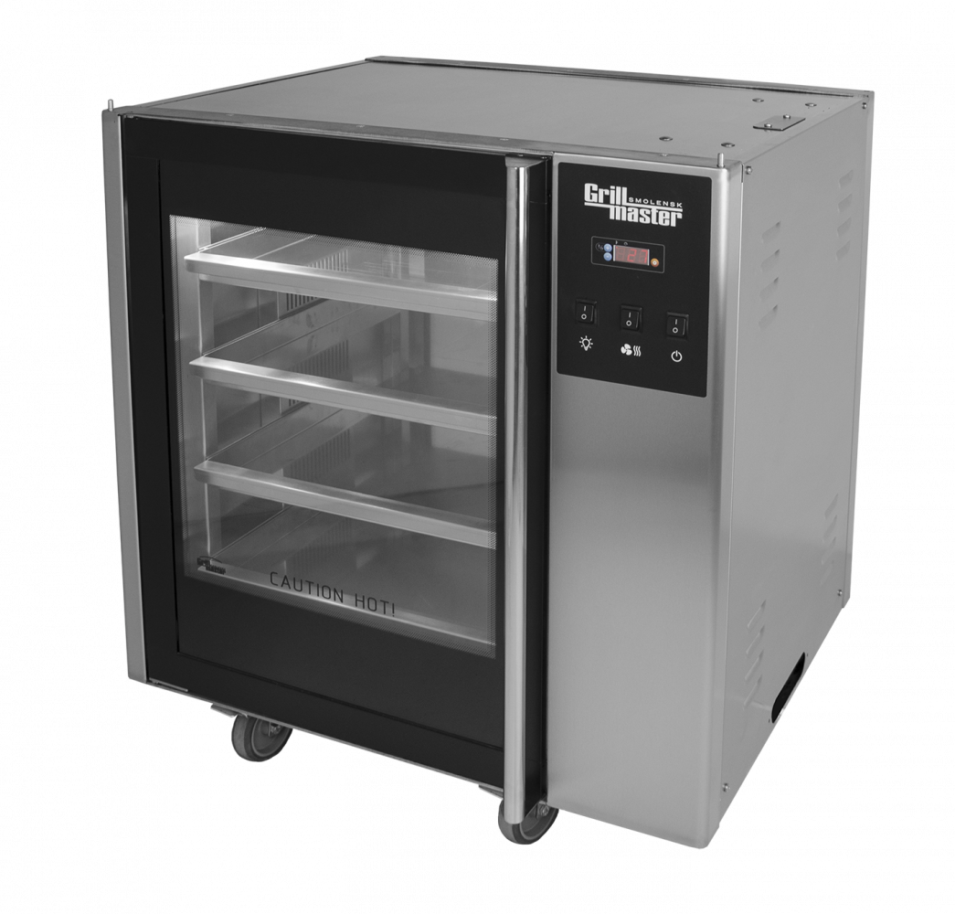 Благодаря яркой галогенной подсветке и стеклянным дверям с двух сторон обеспечивается отличный обзор и сквозной доступ к 4 противням витрины. Электронный термостат  и таймер тепловой  витрины позволяет задать точную температуру в камере в диапазоне от 30 до 90 оС и видеть время, в течение которого продукт поддерживается с заданной температурой. Витрина выполнена полностью из нержавеющей стали, для удобства перемещения комплектуется съемными колесами со стопорами.