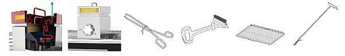 • В комплект поставки входят щипцы, щетка, решетка для гриля и кочерга