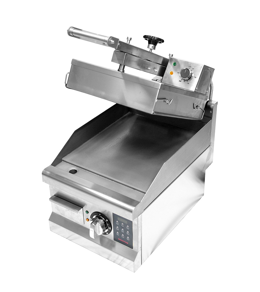 Гриль пресс (бройлер) полуавтоматический для жарки стейков и гамбургеров Kocateq GH33ED со съемной тефлоновой стеклотканью предназначен для жарки мяса, птицы, рыбы и овощей, приготовления стейков, гамбургеров и горячих сэндвичей на предприятиях общественного питания и торговли. Модель оснащена цифровой панелью управления, аналоговыми термостатами для регулировки температуры, съемным лотком для сбора жира. Корпус выполнен из нержавеющей стали, ножки - из пластика, нижняя пластина - из теплопроводящего сплава, верхняя пластина покрыта сменной тефлонированной стеклотканью.