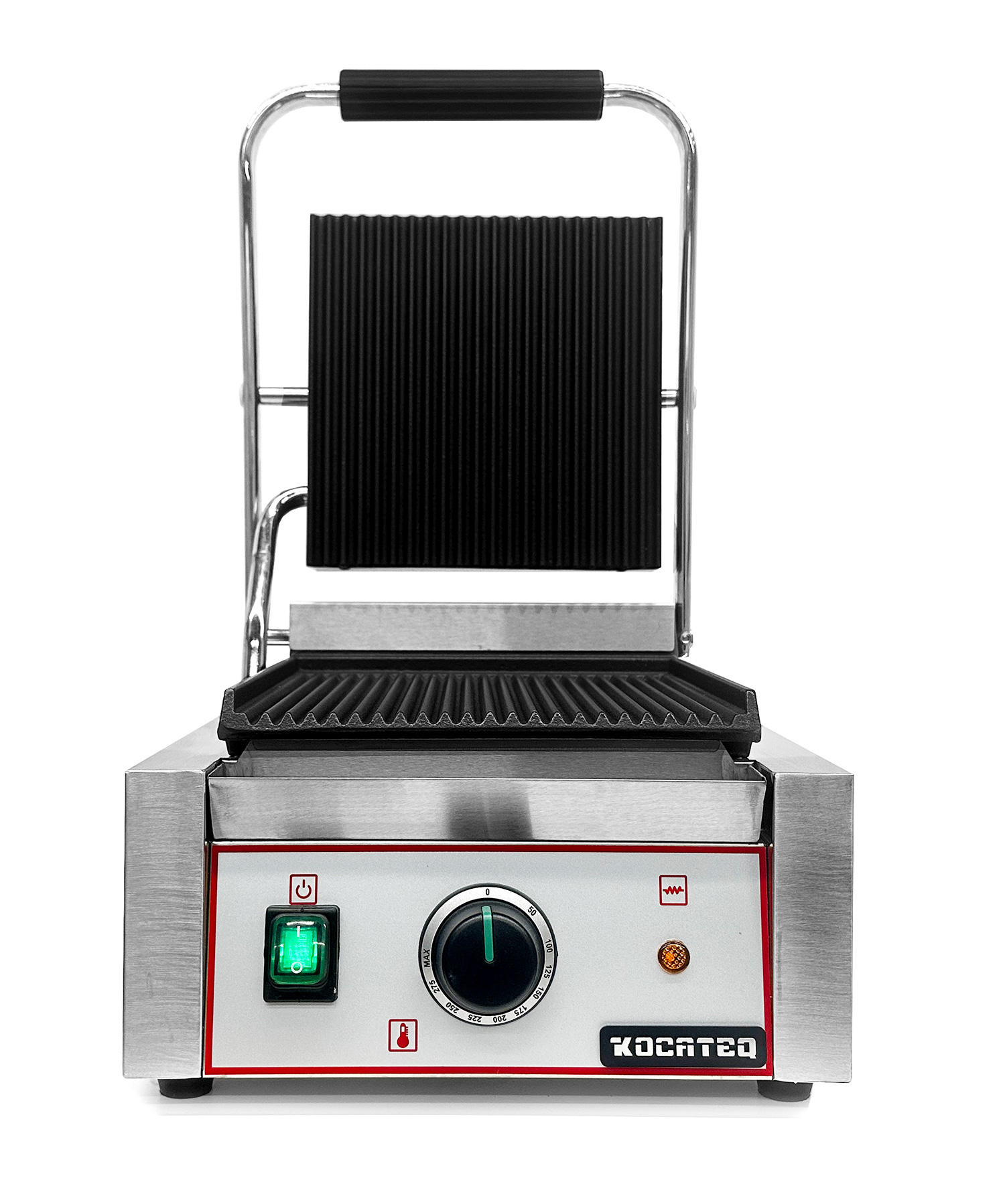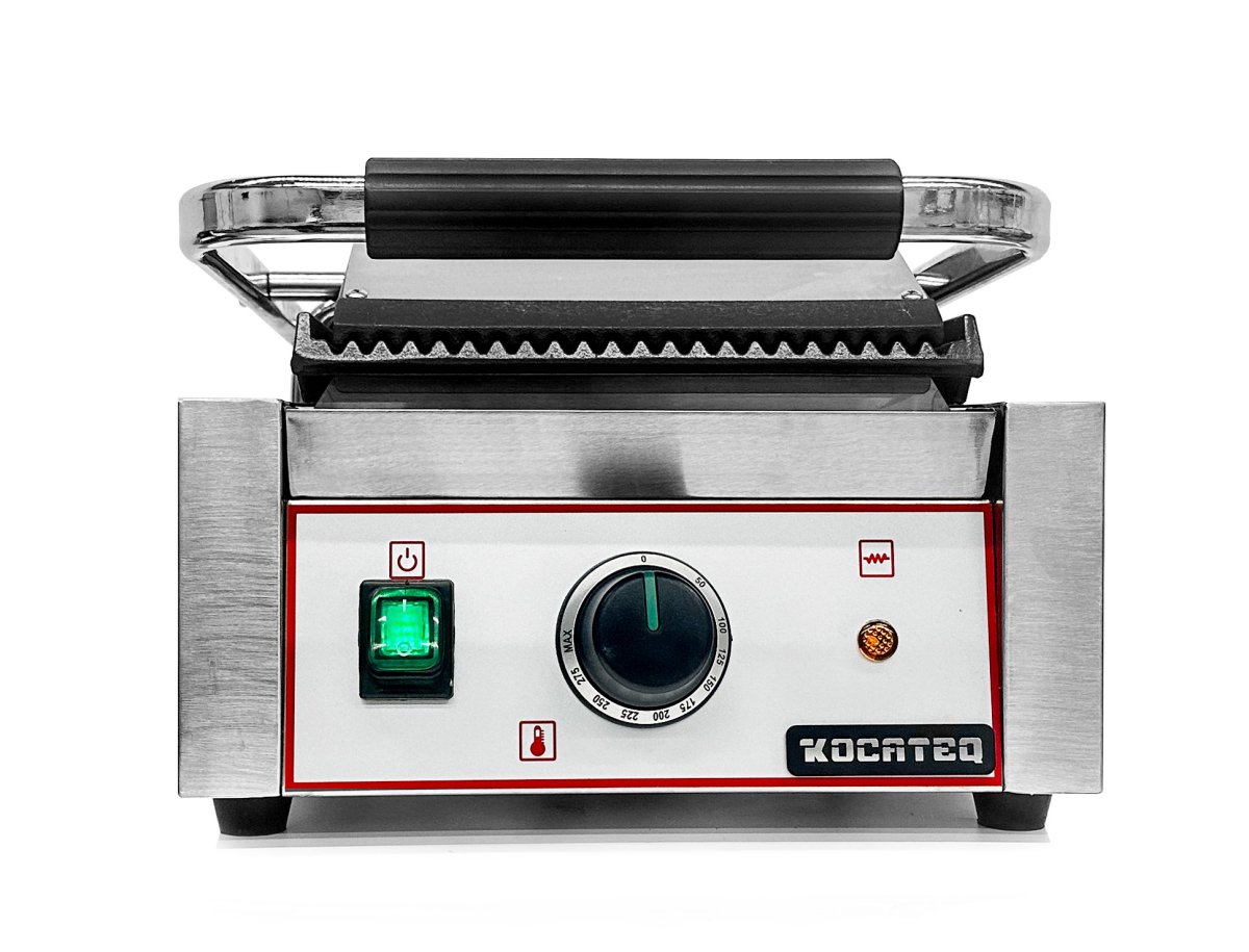 Гриль пресс Kocateq GH 811A GL односекционный с верхней и нижней ребристой пластиной