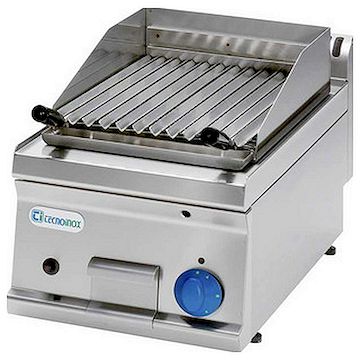Гриль Tecnoinox GR35G7 используется для приготовление различных блюд. В основе работы оборудования лежит принцип жарки продуктов на углях. Только здесь вместо древесного угля применяются натуральные камни вулканической лавы. Они равномерно распределяют жар по всей нагревательной поверхности и позволяют жарить продукты без добавления масла. Также преимущество аппарата в том, что приготовленные на нем блюда приобретают "вкус барбекю", ведь раскаленная лава, впитывая жир, создает легкий дымок, которым "напитываются" продукты.