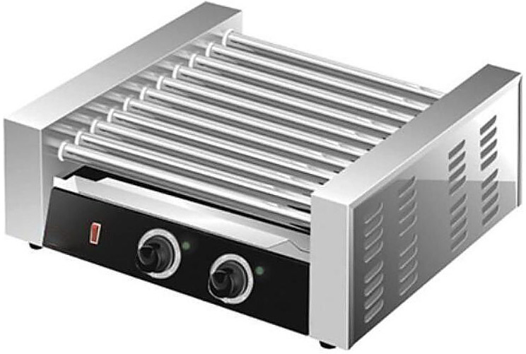 Гриль роликовый EKSI HHD-11 используется для обжаривания и подогрева сосисок и колбасок для хот-догов на предприятиях общественного питания, фуд-кортах и торговых точках по продаже гриль-догов. Модель оснащена 2 ручками регулировки температуры и поддоном для сбора жира. Корпус и ролики выполнены из нержавеющей стали.