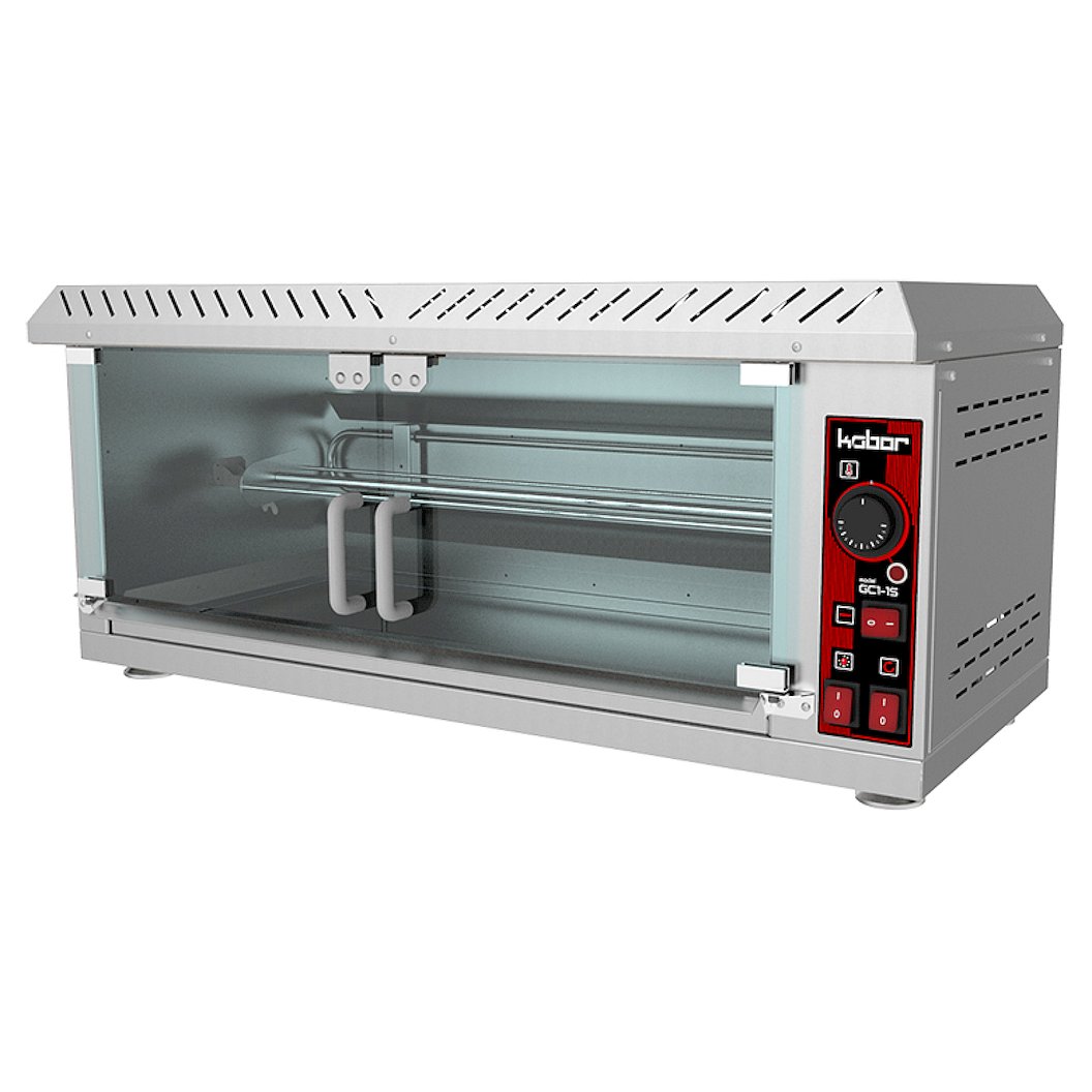 Гриль для кур Кобор GC1-1S служит для жарки тушек цыплят, куриных окорочков и других продуктов в предприятиях общественного питания и торговли. Модель оснащена стеклянными дверцами, внутренней подсветкой, съемным поддоном и регулируемыми по высоте ножками. Корпус выполнен полностью из нержавеющей стали.