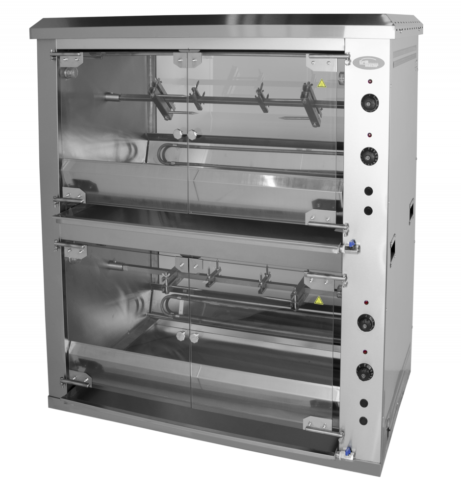 Гриль Grill Master Ф6К2Э (21135б) для жарки поросят и баранов применяется для приготовления до 2 барашков (кабанов) в кафе, ресторанах и на других предприятиях общественного питания. Модель выполнена из нержавеющей стали, оснащена 10-ю шампурами, дверцы из закаленного стекла. Постоянное вращение горизонтальных шампуров вблизи ТЭНов обеспечивает равномерную качественную прожарку птицы. Безупречная работа аппарата за счет итальянского надежного мотора, шестерной и цепной передачи.