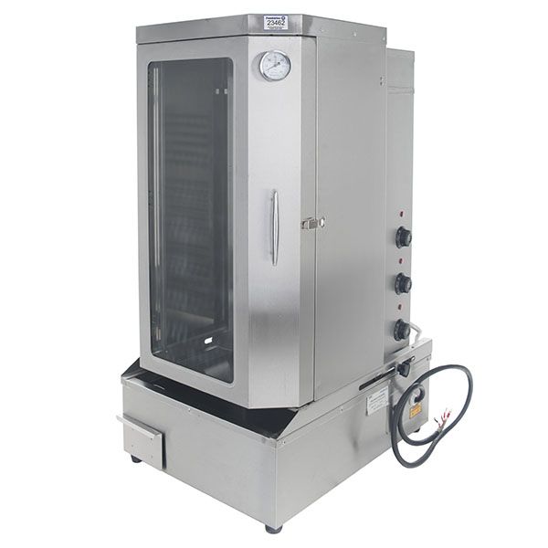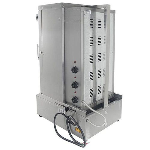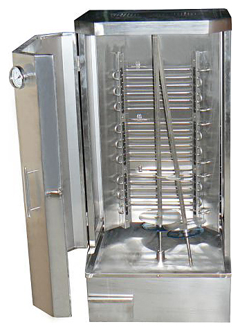 Гриль для шаурмы Foodatlas CY-70A (со створками) используется на предприятиях общественного питания и торговли для запекания специально подготовленного свиного, говяжьего, бараньего или куриного мяса на вертеле.