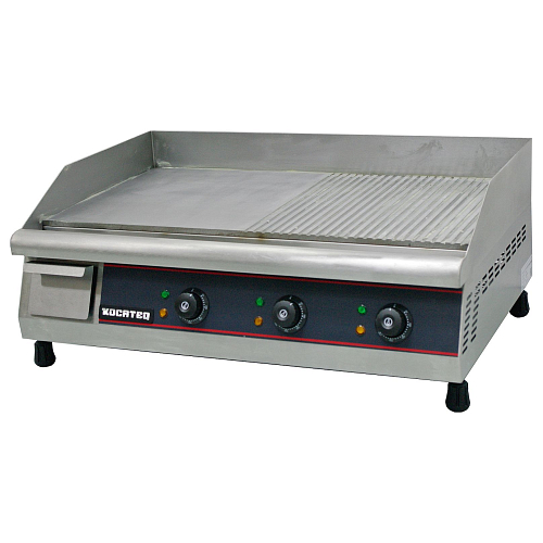 Гриль-сковорода Kocateq GH760A используется для жарки мяса, овощей, рыбы, птицы и других продуктов в различных заведениях общественного питания и фастфуда (барах, закусочных, бургерных). Оборудование имеет 2 зоны нагрева, температурный режим от 80 до 320 °С и комбинированную поверхность (гладкая + рифлёная).