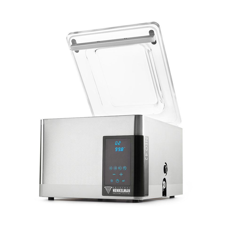 Вакуумный упаковщик Henkelman Neo 42 используется на предприятиях общественного питания и торговли для упаковки пищевых и не пищевых продуктов в вакуумные пакеты. Модель оснащена сенсорной панелью управления. Упаковочная камера и корпус изготовлены из нержавеющей стали.