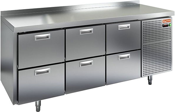 Стол холодильный HICOLD GN 222/TN с 6 ящиками и боковым расположением агрегата предназначен для обработки ингредиентов для приготовления блюд, а также кратковременного хранения скоропортящихся продуктов и напитков на предприятиях общественного питания и торговли.