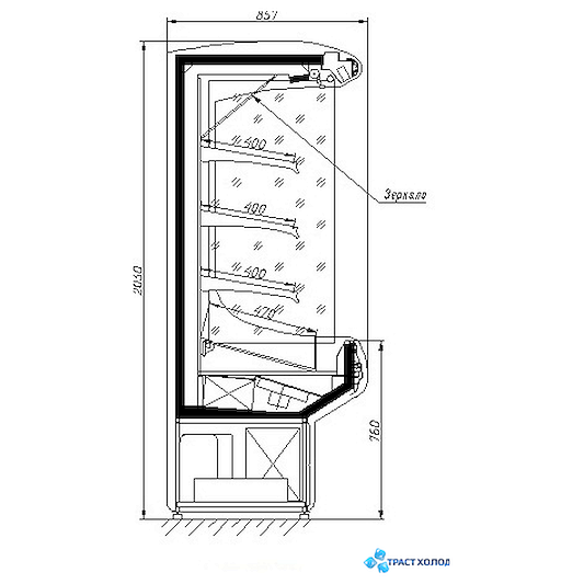 Полки гастрономической горки являются быстросъемными: по необходимости их можно установить в любой конфигурации. Площадь выкладки равна 3,35 м2. Гастрономическая горка Виолетта ВС 15-200 легко собирается в линию с другим холодильным оборудованием и экономит пространство в торговом зале предприятия.