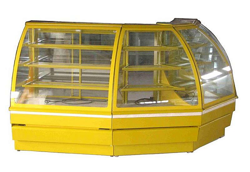 Холодильная витрина ЭлКа Вена угловая 45 градусов предназначена для демонстрации, охлаждения и кратковременного хранения кондитерских изделий и выпечки на предприятиях общественного питания и торговли. Модель оснащена 3 полками, основанием и регулируемыми ножками. Наружные и внутренние детали окрашены порошковой краской и дополнительно покрыты слоем износостойкого лака. Корпус выполнен из крашеной нержавеющей стали, полки - из стекла.