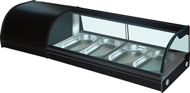 Это оборудование имеет выпуклое переднее стекло с подогревом и раздвижные дверцы.