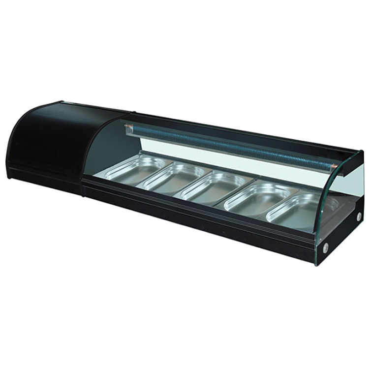 Настольная холодильная витрина Gastrorag VRX-TS1500 применяяется для демонстрации и кратковременного хранения тапас и других блюд в магазинах и заведениях общественного питания. Данная модель оснащена раздвижными дверцами и выпуклым передним стеклом, корпус изготовлен из окрашенной стали.