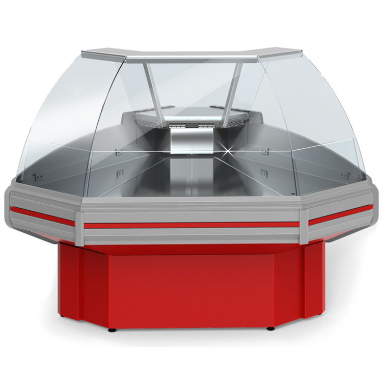 Витрина подойдет для хранения и демонстрации таких продуктов питания как охлажденное мясо, свежая рыба,а также демонстрации колбасных изделий и любых других продуктов. Модель оснащена подсветкой внутреннего объема и шторками. Столешница выполнена из декоративной нержавеющей стали, выдвижные противни выкладки - из нержавеющей стали, полки - из стекла, шторки - из оргстекла.