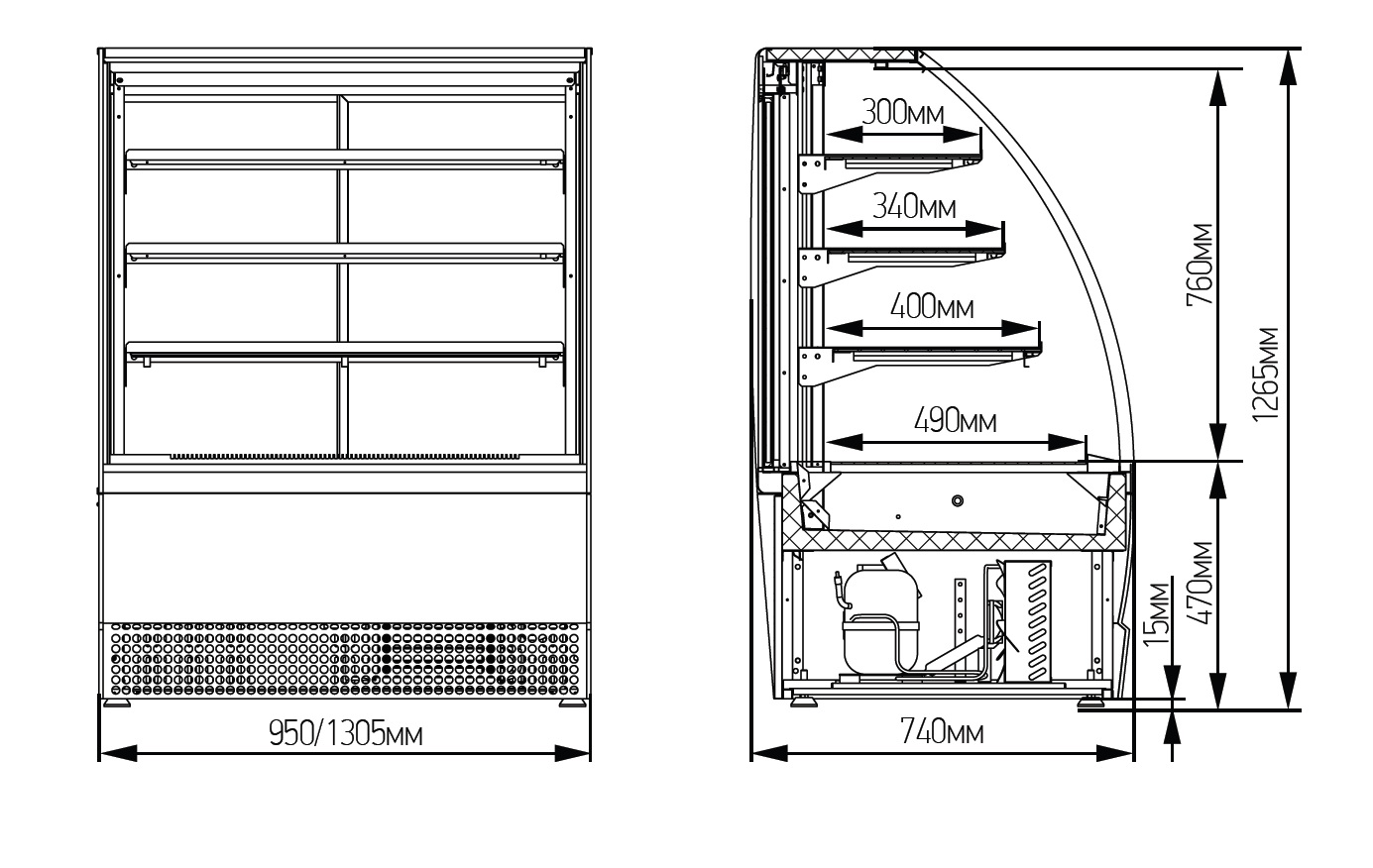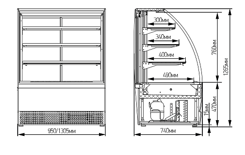 • Охлаждаемая площадь поддонов и полок для выкладки продуктов: 1,3 м2