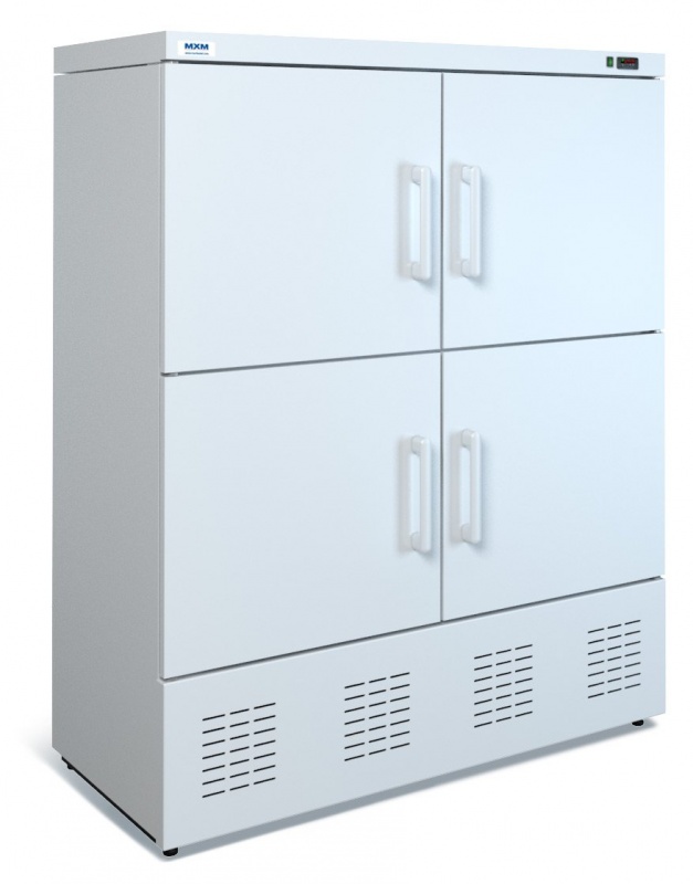 Холодильный шкаф МХМ ШХК-800 – это комбинированная модель с низкотемпературным и среднетемпературным режимами. Данный шкаф может быть использован в магазинах, ресторанах, барах, кафе, столовых. Имеет пять уровней полок-решёток с мелким шагом между стальной проволокой, оцинкованные, окрашенные порошковой краской, корпус из окрашенной оцинкованной стали с пенополиуретановым заполнением, электронный блок управления Evco с индикацией температуры и режимом автоматического размораживания, лампу на всю высоту шкафа. Тип охлаждения - динамическое. Тип оттаивания - автоматическое.