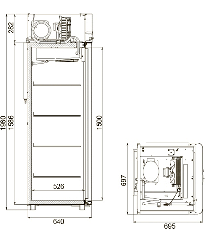 Имеет цельнозаливной пенополиуретановый корпус без щелей и стыков, гарантирующий надежную термоизоляцию охлаждаемого пространства, механическую прочность и долговечность шкафа.
