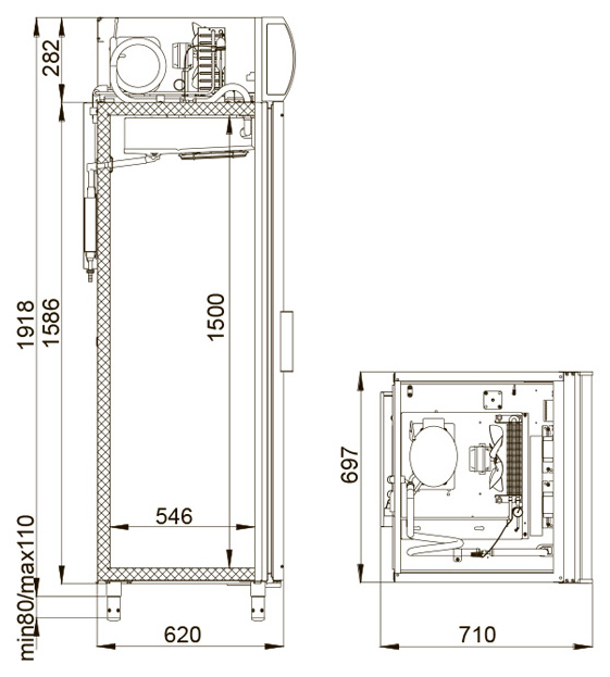 • Шкаф имеет цельнозаливной пенополиуретановый корпус без щелей и стыков, гарантирующий надежную термоизоляцию охлаждаемого пространства, механическую прочность и долговечность шкафа.