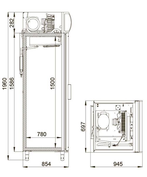 В настоящее время завод применяет регулируемые ножки, обеспечивающие высоту холодильных шкафов POLAIR – среднетемпературных – 1960 мм и низкотемпературных – 1996 мм. На эксплуатационные свойства холодильных шкафов POLAIR данная особенность не влияет. В связи с применением регулируемых по высоте ножек разных производителей общая высота холодильных шкафов может варьироваться следующим образом: для среднетемпературных шкафов объемом 500, 700, 1000 и 1400 литров высота составляет 2028 мм или 1960 мм, низкотемпературных шкафов – 2064 мм или 1996 мм.