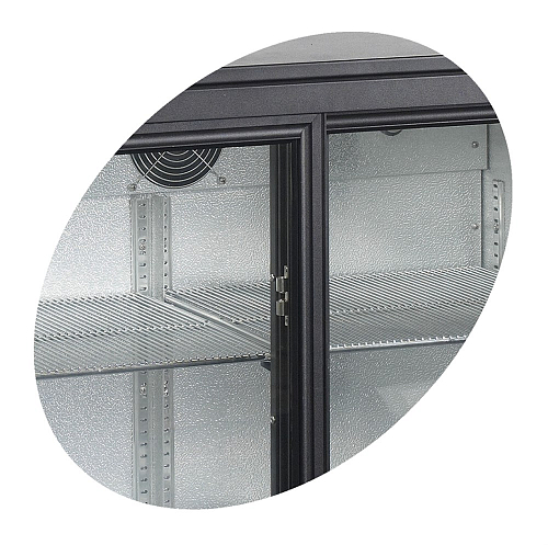 Панорамное стекло, металлические решетки и приятное на глаз современное LED освещение выгодно подчеркивают содержимое камеры. Ножки шкафа регулируются по высоте, что удобно для сглаживания неровностей. Внутренняя отделка выполнена из рифлёного алюминия. Шкаф имеет прочную конструкцию и качественные внутренние компоненты, что гарантирует весьма длительный срок безупречной работы. Использование этого холодильного шкафа поможет оптимальным образом организовать хранение как замороженных, так и просто охлажденных продуктов. В холодильном контуре используется безопасный для окружающей среды хладагент.