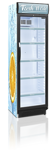Посредством циркуляции прохладного воздуха внутри камеры достигается равномерное поддержание температуры. Панорамное стекло, металлические решетки и приятное на глаз современное освещение выгодно подчеркивают содержимое камеры. Шкаф имеет прочную конструкцию и качественные внутренние компоненты, что гарантирует длительный срок безупречной работы. В холодильном контуре используется безопасный для окружающей среды хладагент - R600a. Шкафы имеют хорошую площадь для размещения логотипа на боковых панелях, на дверях и на канапе. Данные модели выпускаются со световым табло.