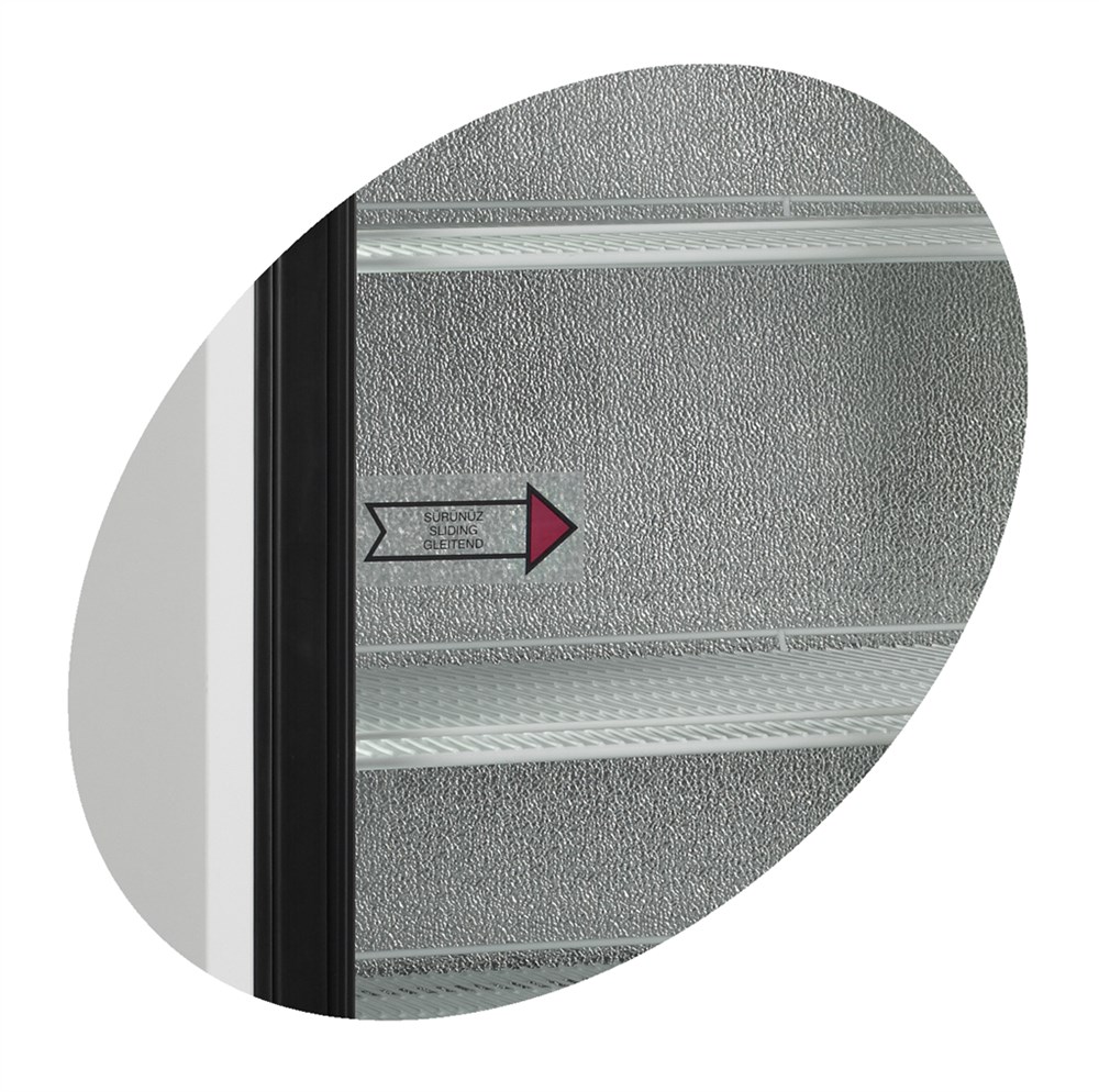 Посредством циркуляции прохладного воздуха внутри камеры достигается равномерное поддержание температуры. Панорамное стекло, решетки и приятное на глаз современное LED освещение выгодно подчеркивают содержимое камеры. Шкаф имеет прочную конструкцию и качественные внутренние компоненты, что гарантирует длительный срок безупречной работы. В холодильном контуре используется безопасный для окружающей среды хладагент - R290