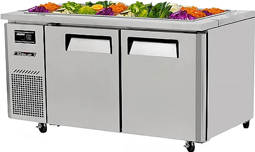 Холодильный Turbo Air KSR15-2 предназначен для кратковременного хранения ингредиентов для приготовления салатов на предприятиях пищевой промышленности, общественного питания и торговли. Корпус выполнен из нержавеющей стали с применением полиуретановой теплоизоляции высокой плотности и уплотнения из теплоэффективного АБС-пластика (акрилонитрилбутадиенстирола), не пропускающего конденсата, оборотная сторона и низ - из оцинкованной стали, пол - из нержавеющей стали с алюминиевыми вставками по бокам и сзади, регулируемые полки - из толстой проволоки с виниловым покрытием.