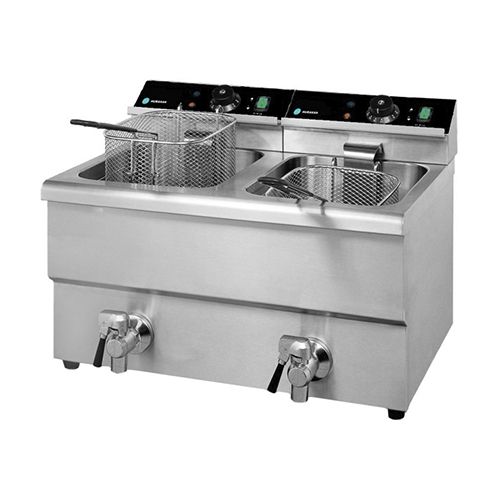 Фритюрница HURAKAN HKN-FT1212N используется в различных предприятиях питания, в основном формата "FastFood", и имеет оснащение панелью управления электромеханического типа, а также кранами для слива